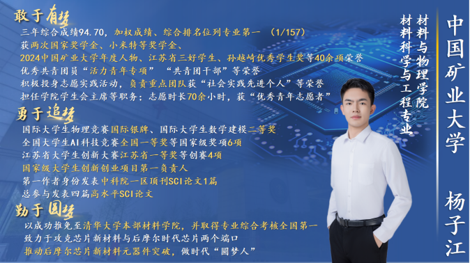 【晶格之光】太阳集团tcy87222021级本科生杨子江获评第十九届“‘青春矿大’校园年度人物”