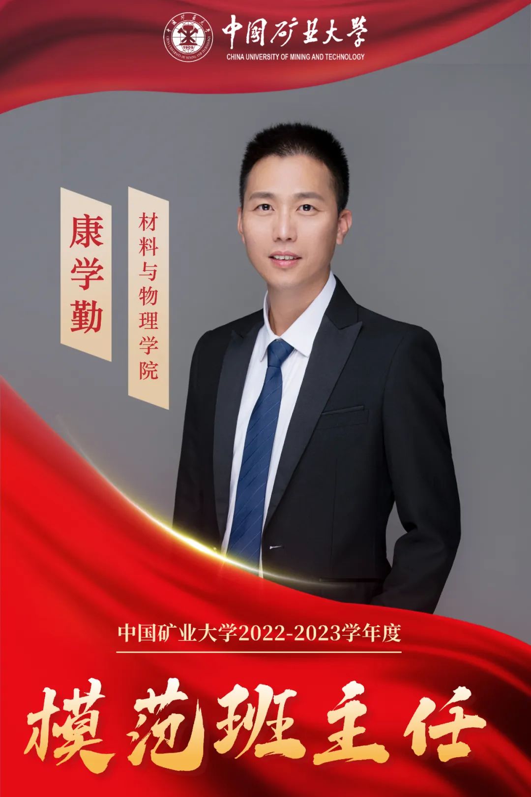 【晶格之光】太阳集团tcy8722教师康学勤荣获太阳成集团2022-2023年度“模范班主任”称号