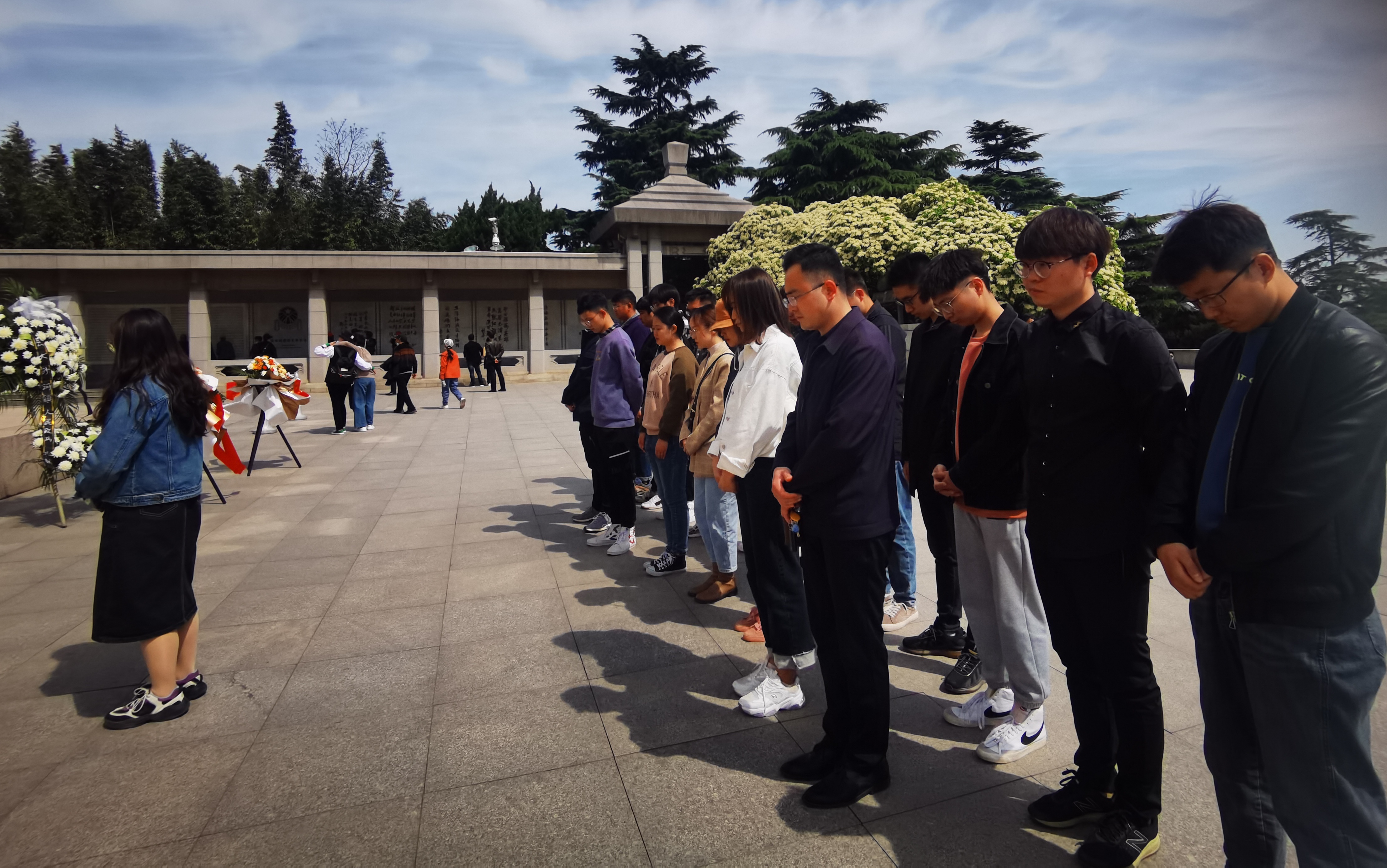 4月18日上午10时,所有参与者在淮海纪念塔集合,伴着和煦的春风一起走进淮海纪念塔。扫墓仪式共有三个环节。首先,全体成员在庄严的淮海战役烈士纪念塔前肃立,向革命烈士默哀三分钟。