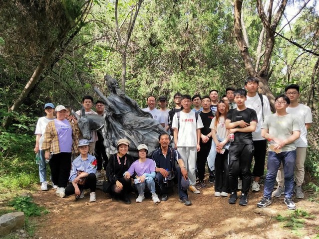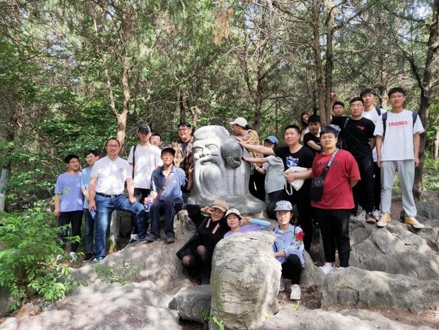 随后,在曹炜主任的带领下,有幸看到泉山森林公园中不一样的地方,看到张果老倒骑驴雕像以及果老洞。曹炜主任向党员们介绍八仙之一张果老倒骑驴的故事,他说倒骑驴是告诉人们要时常看到回路,注重总结过去。在果老洞前,纪承书记讲述了历史上的道教以及世界上宗教文化进程与发展,他强调道教才是中国的传统宗教。