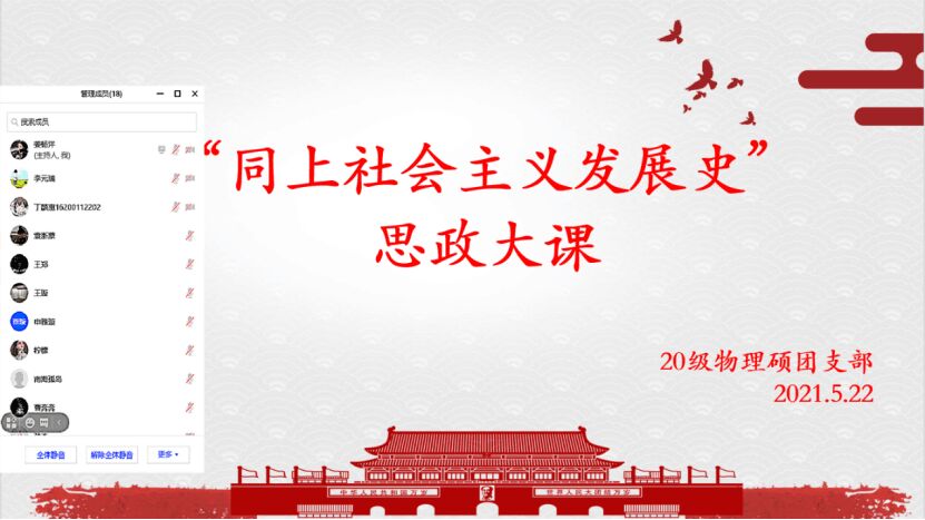 5月22日14时,公司组织员工党员、青马班学员、团学组织骨干、各团支部书记于公司楼A105同上社会主义发展史思政大课。其他青年员工以团支部为单位集中观看学习。