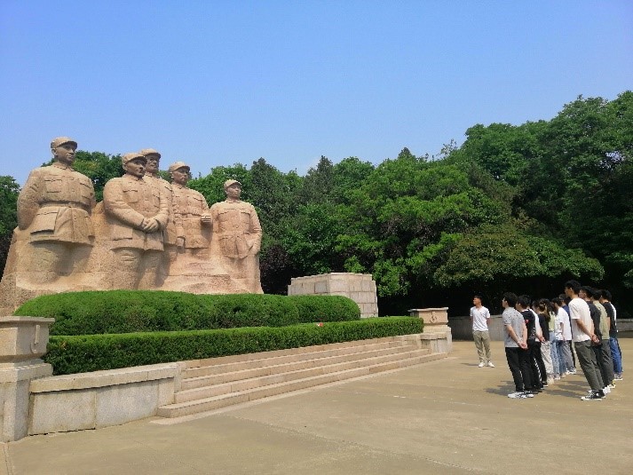 5月21日上午,材料研究生二年级党支部全体党员同志及积极分子和发展对象一同前往徐州淮海纪念塔进行瞻仰淮海战役烈士纪念塔以及缅怀先烈丰功伟绩。首先党员同志代表在总前委群雕下向全体人员介绍五位革命家的英雄事迹以及淮海战役对解放战争重大影响。接着,全体人员瞻仰了淮海战役烈士纪念塔,党员代表顾胡维同志致悼词,全体人员默哀。然后,全体人员绕纪念塔一圈,参观了塔下围廊,墙壁上镌刻的党和国家领导人题词以及三万多名烈士名录,表达对革命先烈的崇高敬意。最后,全体人员在淮海战役烈士纪念塔前合影。