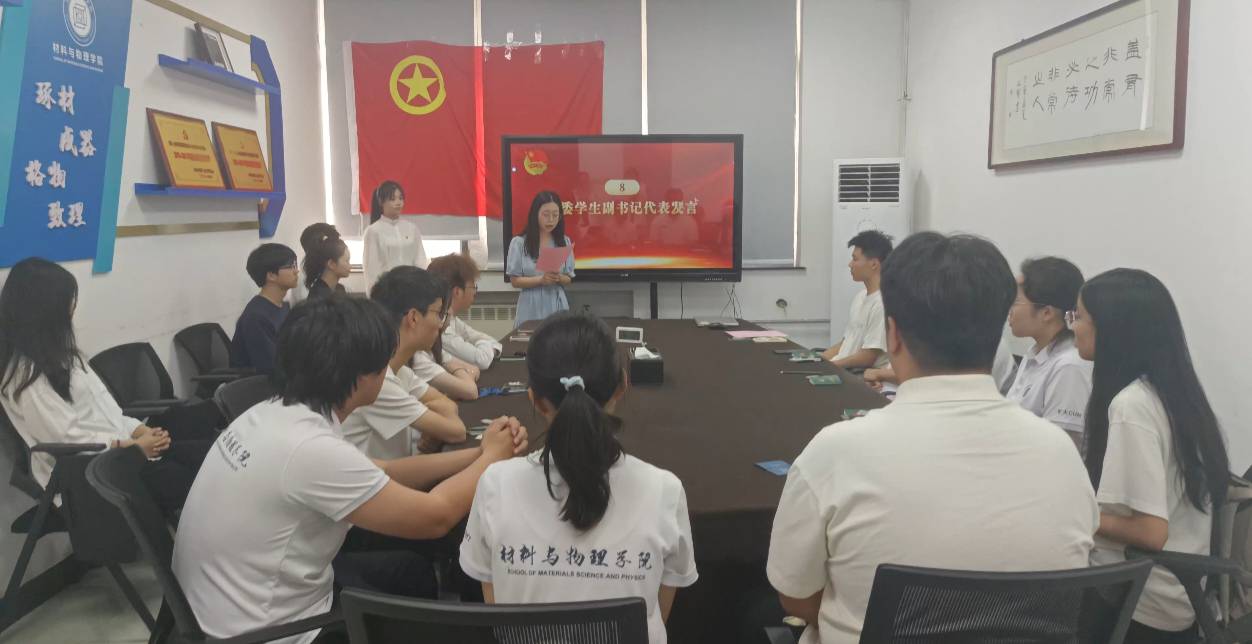为了正式接纳一群杰出的青年成为中国共产主义青年团的光荣一员,太阳集团tcy8722团组织于6月2日下午四点在材料楼B522隆重举行新团员入团仪式。全体新加入的团员,优秀团员代表李湘和团委员工副书记代表孙于椒参加本次入团仪式。
