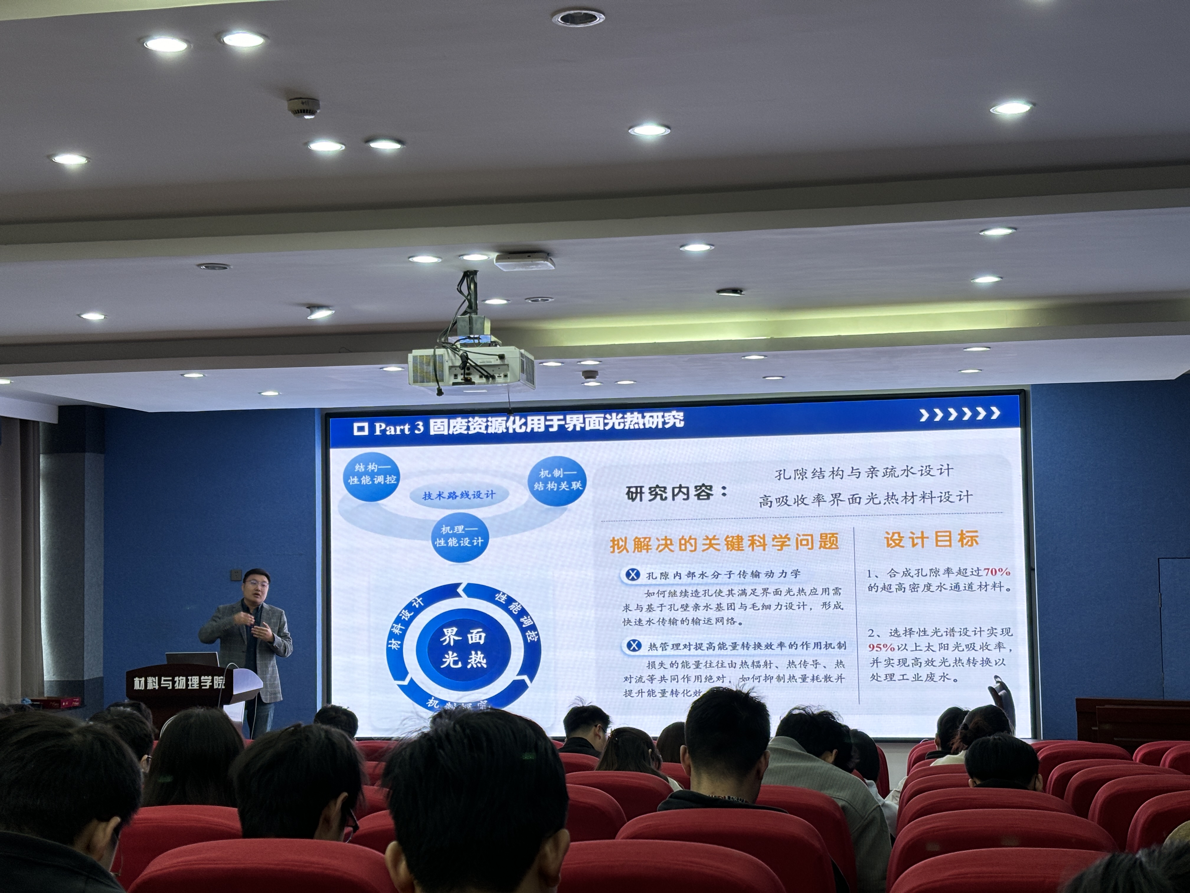 会上,吴震老师就界面光热原理、固废资源化用于界面光热研究等方面进行详细的介绍和讲解。他讲解了如何通过控制掺杂来调节相应材料的热电性能,以及如何通过化学气相传输法实现2D纳米片的垂直生长,这些研究为提高材料的热电转换效率提供了新的思路。