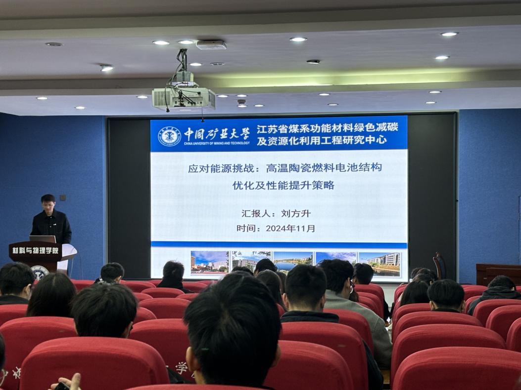 接着,刘方升老师以《应对能源挑战:高温陶瓷燃料电池结构优化及性能提升策略》作为主题进行介绍,从传统多孔支撑电极孔隙到低浓度瓦斯SOFC技术路线进行阐述,分析绿色能源技术的重要发展方向。此外,刘方升老师就高温陶瓷燃料电池结构优化及性能提升方面的最新研究成果进行讲述。