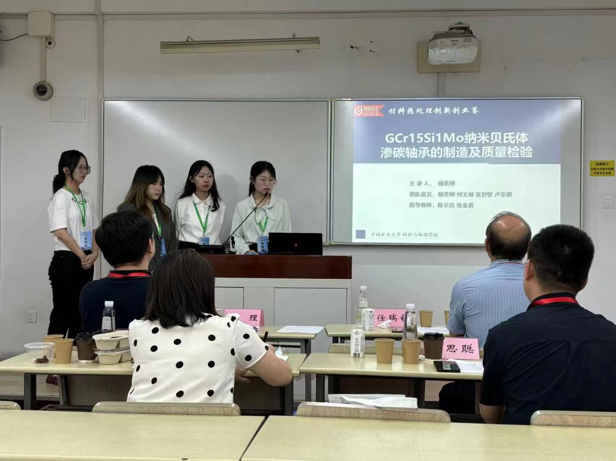 公司共有两支本科生队伍参赛,其中一组进入到最后的总决赛获得国家二等奖,另一支队伍获得大区赛银奖。进入决赛的队伍参赛队员有杨若婷、何文杨、张舒钦和卢乐琪,指导教师是陈长玖和张金勇。该组区域赛的参赛项目为“碳化物增强Nb-Ta-Ti-V-C难熔高熵合金显微组织、力学性能与热稳定性研究”,以 Nb-Ta-Ti-V-C难熔高熵合金为研究对象,设计了具有室温大塑性变形能力的Nb22.2Ta22.0Ti23.9V21.2C10.7难熔高熵合金,研究了该合金热处理前后微观结构、力学性能的变化,探究热处理对难高熵合金组织与性能的影响。决赛阶段参赛队员针对抽中的决赛题目设计出了“GCr15Si1Mo纳米贝氏体渗碳轴承的制造及质量检验”,包括选材原因、轴承制造流程、热处理工艺规范、热处理设备以及质量检验。纳米贝氏体轴承钢具有优异的力学性能,比传统渗碳轴承钢具有更高的耐磨性、更高的滚动接触疲劳寿命,在原材料成本方面更有优势。