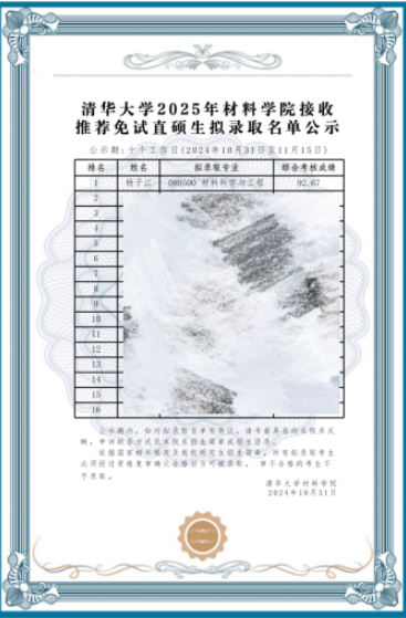 清华大学推免拟录取名单