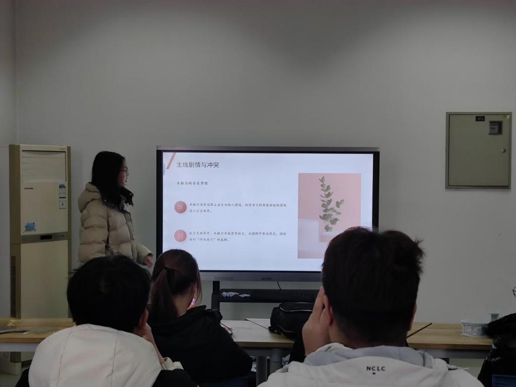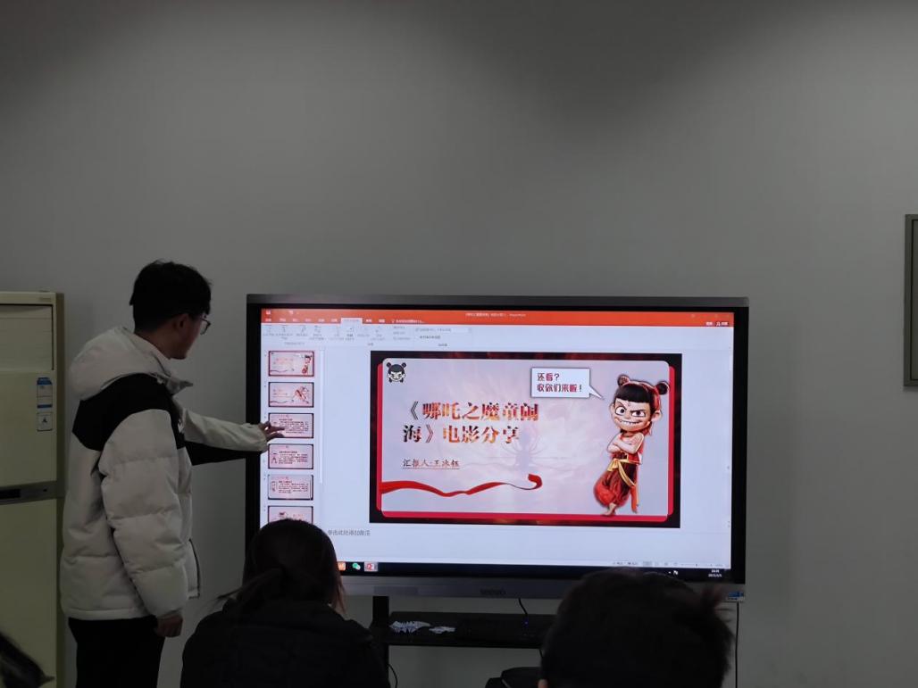 在电影分享环节,《寻梦环游记》以其温馨治愈的风格打动了在场每一位同学。樊诗雨同学不仅讲述了电影的内容,还分享了自己追梦的经历,引发了大家的共鸣,让在座同学感受到梦想与亲情的温暖力量。曾哲同学带来的《楚门的世界》引发了大家对现实与自由的思考,激发了同学们打破常规、勇敢追求真实自我的勇气。王冰钰同学分享的《哪吒之魔童闹海》作为国漫佳作,以震撼的特效和燃爆的场面给大家留下了深刻印象,引导同学们意识到面对困难和挑战,不能退缩,要勇敢抗争,创造属于自己的精彩。