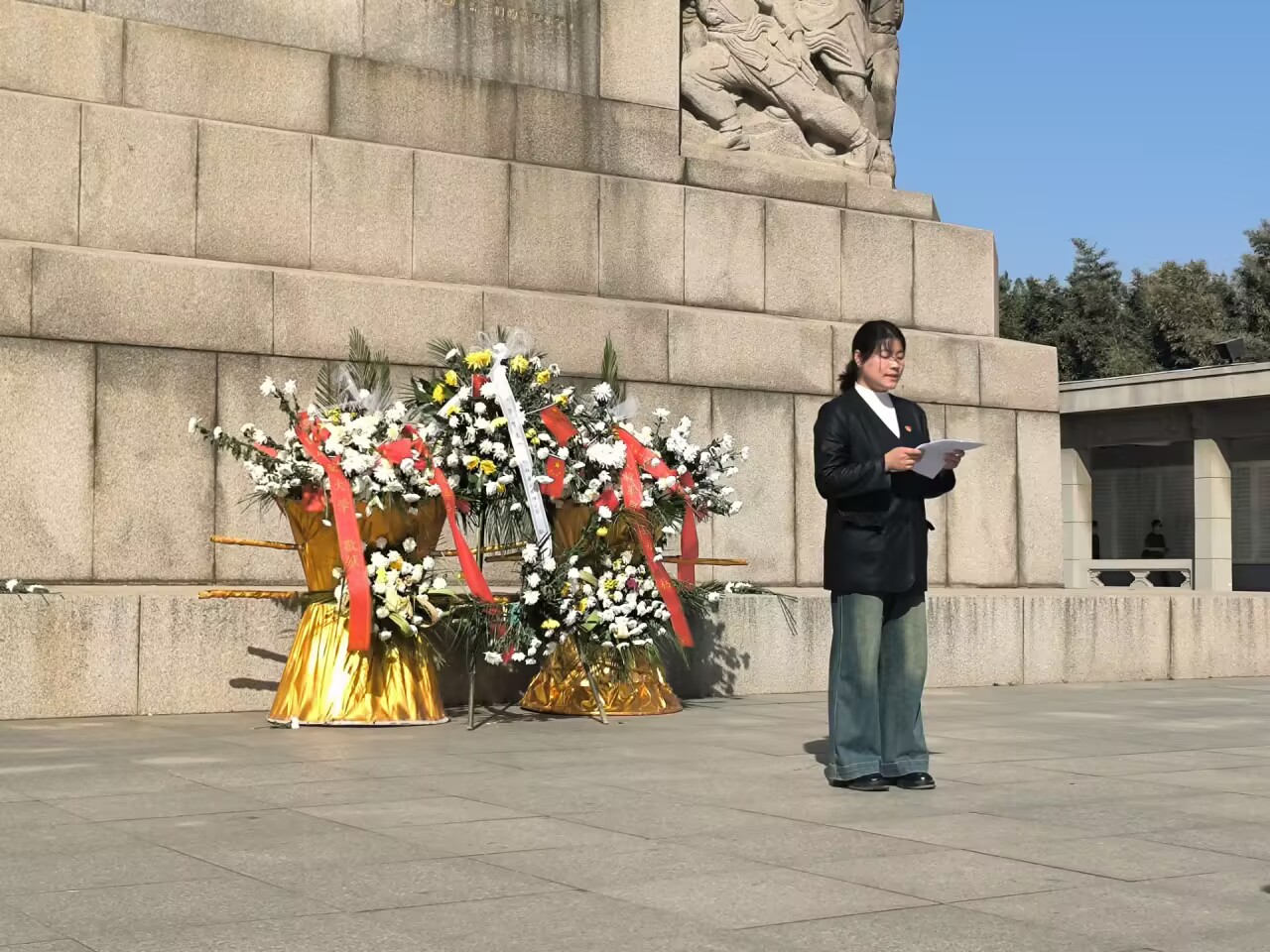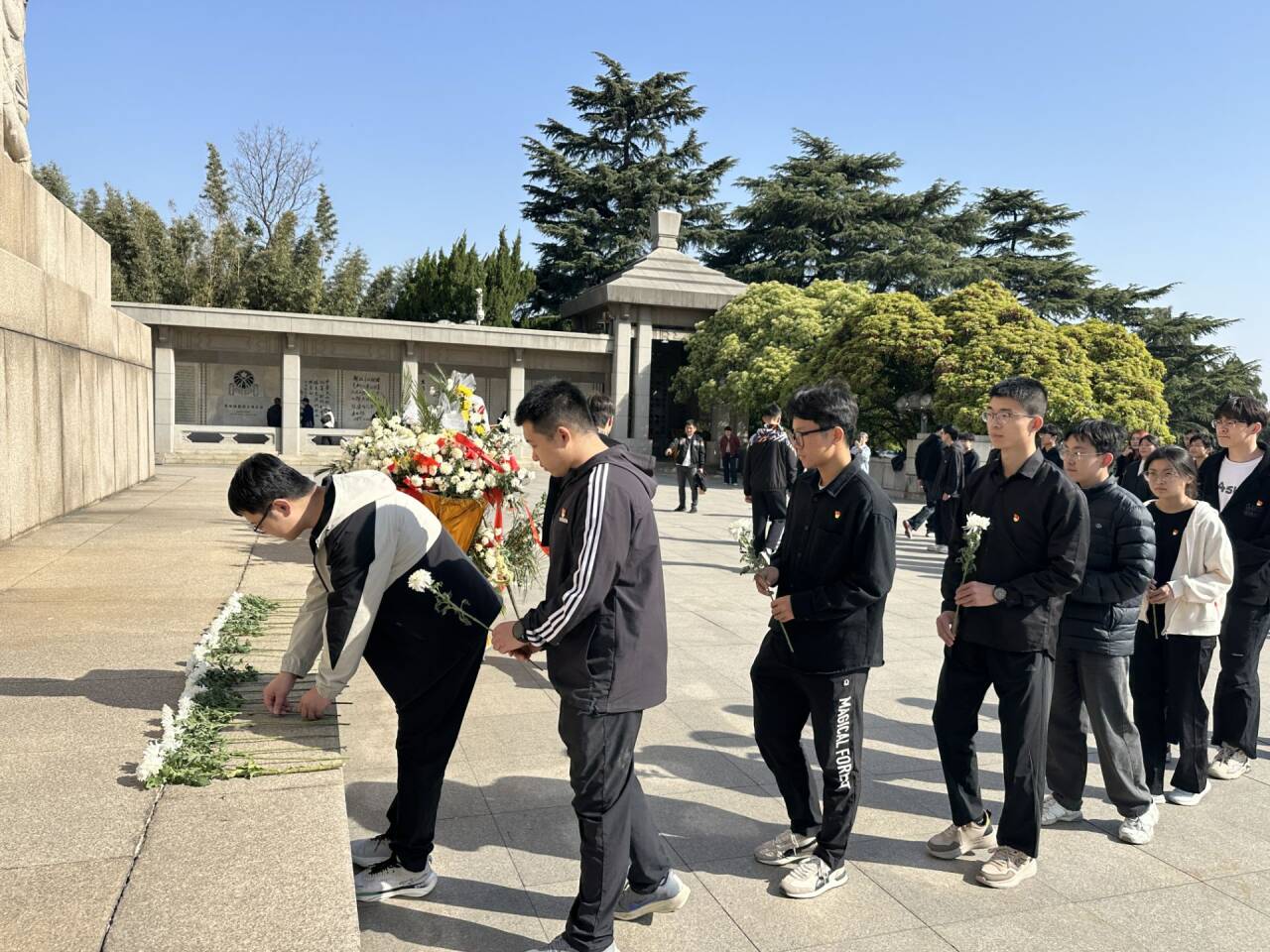 活动伊始,全体师生整齐列队、肃立默哀,深切缅怀革命先烈,寄托无限哀思。默哀仪式后,全体师生向革命先烈三鞠躬并依次敬献鲜花,表达对革命烈士的崇高敬意和缅怀之情。