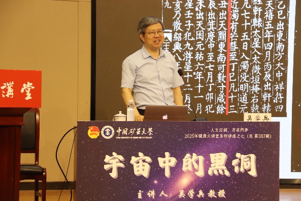 讲座中,吴学兵以其深厚的学术底蕴和丰富的科研经验,带领师生们踏上了黑洞探索之旅。他回顾了黑洞概念从提出到萌芽再到被学界重视的历程,并深入剖析了不同类型黑洞在质量、形成机制以及演化过程中的差异。随后,他介绍了科学家通过观测黑洞吸积盘辐射、引力透镜效应以及引力波探测等多种手段发现不发光黑洞的例子以及黑洞观测研究所需的射电望远镜、空间探测器等尖端技术。最后,他为师生展望了黑洞研究的光明前景,指出尽管当前研究面临着如观测精度不高、多波段数据难以综合处理等挑战,但随着技术进步和理论完善,未来将有望在黑洞演化、黑洞与星系共同成长等方面取得更多新的突破。