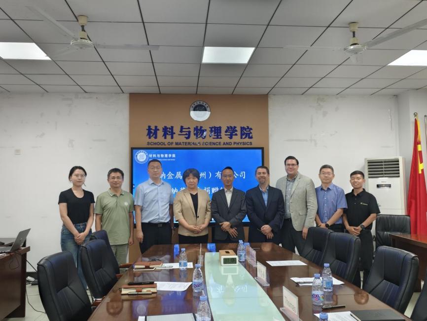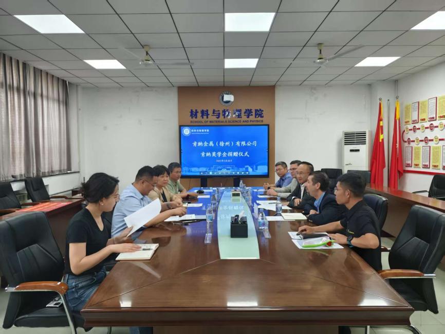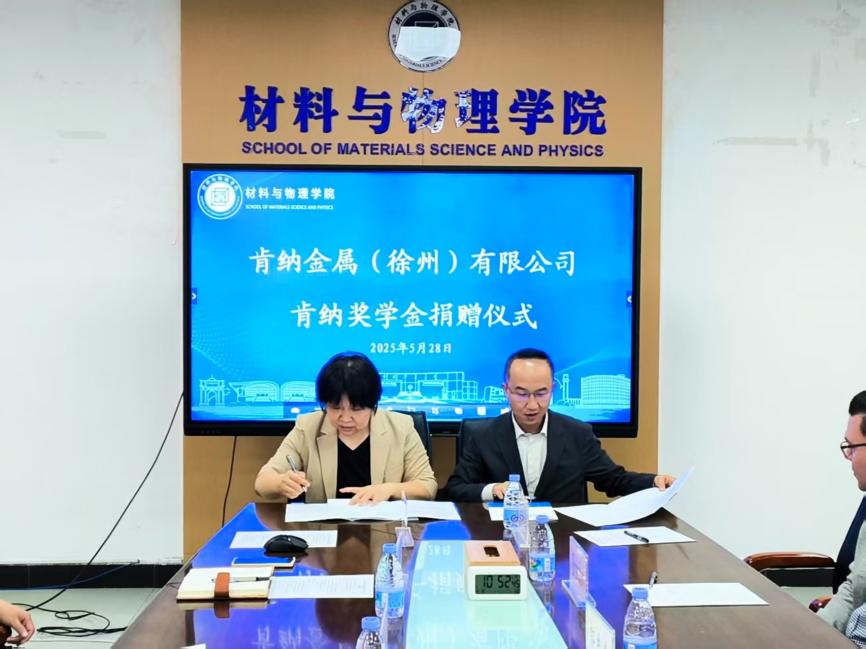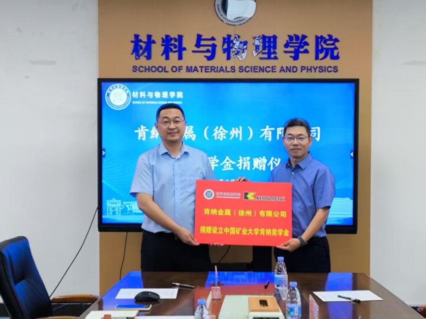 5月28日上午,“肯纳奖学金”捐赠签约仪式在材料楼A501会议室举行。肯纳金属基础设施事业部中国区总经理郭志全、产品工程部高级研发经理Thomas、工程部研发经理Brandon、徐州工厂厂长王京伟、中国区人力资源经理庄园出席活动,公司党委书记范韶维、党委副书记李智、副教授陈辉、团委书记孟雅婷、辅导员许海超参加活动,会议由李智主持。