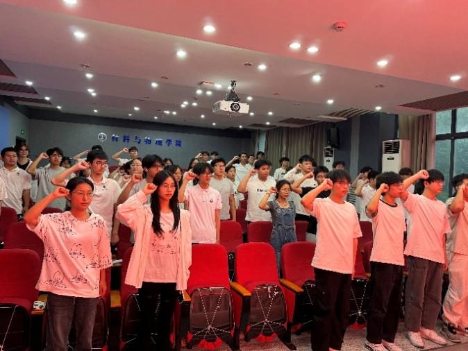 6月6日,公司在材料楼A105报告厅举行了庄重的新发展团员入团仪式。仪式在激昂的国歌声中拉开帷幕。主持人宣读新发展团员名单后,院团委老师及员工骨干为新团员逐一颁发团员证并佩戴团徽。全体新团员面向鲜艳的团旗,高举右拳,庄严宣誓。仪式上,入团介绍人详细阐述了团员的权利与义务,强调了发挥模范带头作用的重要性。新团员代表徐飞扬同学发言,承诺将以团员标准严格要求自己,积极服务集体,努力成长进步。优秀团员代表周欣纯同学结合自身经历,勉励新团员坚定信念,勇担时代责任。院青年志愿者协会主席屈淑琪作总结发言,她热烈欢迎新团员的加入,并期望他们在未来的学习和生活中,积极投身实践,在奉献中锤炼本领,在奋斗中实现青春价值,为团组织增添新的活力。