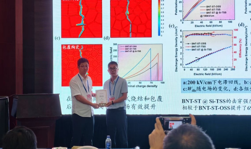 公司固废利用与高性能陶瓷团队、矿物能源和环境材料团队的12名师生参与了B04分会的学术汇报与交流。其中牛继南老师以“高熵水滑石除氟剂制备与性能初探”为题进行汇报,蔡子明老师以“钛酸铋钠基介质陶瓷储能性能研究”为题进行汇报,刘芳芳老师以“黏土矿物基复合隔膜的制备及电化学性能研究”为题进行汇报,李世恒老师以“基于矿物材料的储能聚合物复合电介质”为题进行汇报,唐鹏举老师以“Cf/SiC表面SiC/ZrB2-SiC-Si涂层的料浆-气液硅低温共渗制备及其超高温抗烧蚀机制研究”为题进行汇报,朱超琼老师以“BaTiO3基超薄层BME MLCC的可靠性机理”为题进行汇报,张保敬老师以“铜渣还原合金的纯净化与尾渣绿色建材化研究”为题进行汇报,分别展示了公司在除氟剂、黏土矿物基复合隔膜、复合电介质、铜渣等多元固废协同利用等方向的最新研究成果。硕士生谢超群、程俊生、郑广森、智明阁等在B04会场均进行了口头报告,有力提升了公司在资源材料与循环利用及相关领域的国内影响力。