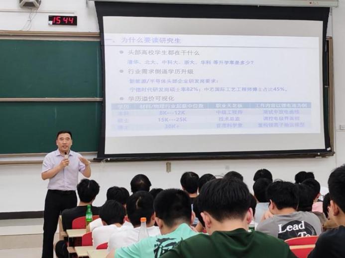 鞠治成结合时代发展趋势、行业用人需求、学术前沿动态以及当前高校毕业生的就业竞争态势,深入剖析了攻读研究生对个人能力提升、职业发展的必要性与现实意义。他特别围绕院校与专业选择、个人成长规划等关键问题展开,从时间规划以及优势匹配等方面提供具体的指导性建议,鼓励同学们尽早锚定方向,早做谋划,为升学竞争筑牢基础。