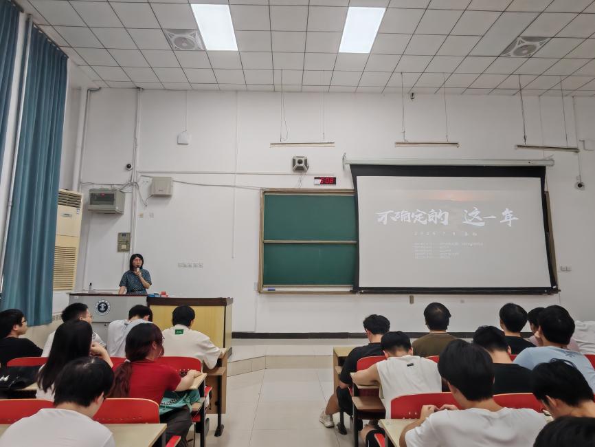闫山画聚焦学业与升学就业的衔接,详细解读了选课安排、毕业要求及课程体系。他重点强调了专业课、公选课、跨选修课等课程的学分要求,提醒同学们要严格对照培养方案完成学业任务,以扎实的专业基础为升学深造与求职就业筑牢根基。苏彤根据往届毕业生升学就业情况,系统分析了保研率、考研率、就业率等核心指标,总结往届员工的成功经验与常见误区,鼓励同学们以清晰目标为指引,科学规划,一步一个脚印稳步前进。