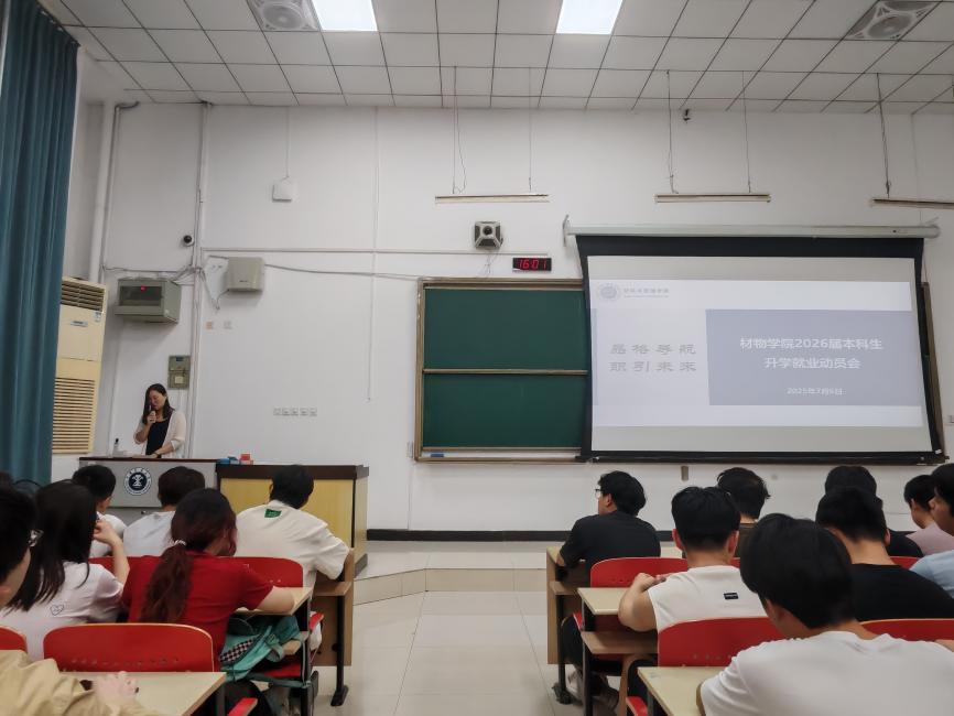 为助力2026届本科生明晰职业发展路径、提升就业与升学竞争力,2025年7月6日,材料与物理公司在博2-C102召开“职”引未来——2026届本科生升学就业动员会。公司党委副书记李智、副经理鞠治成、教学办秘书闫山画、2025届本科毕业生辅导员苏彤、2026届本科生辅导员孟雅婷及全体2026届本科生共同参会。