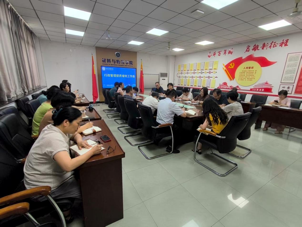 7月12日,公司在材料楼A501召开行政管理提质增效会,公司党委书记范韶维、副经理焦险峰,党政办公室、科研办公室、教学办公室、员工工作办公室的全体行政管理人员和实验中心全体教师参会,会议由范韶维主持。