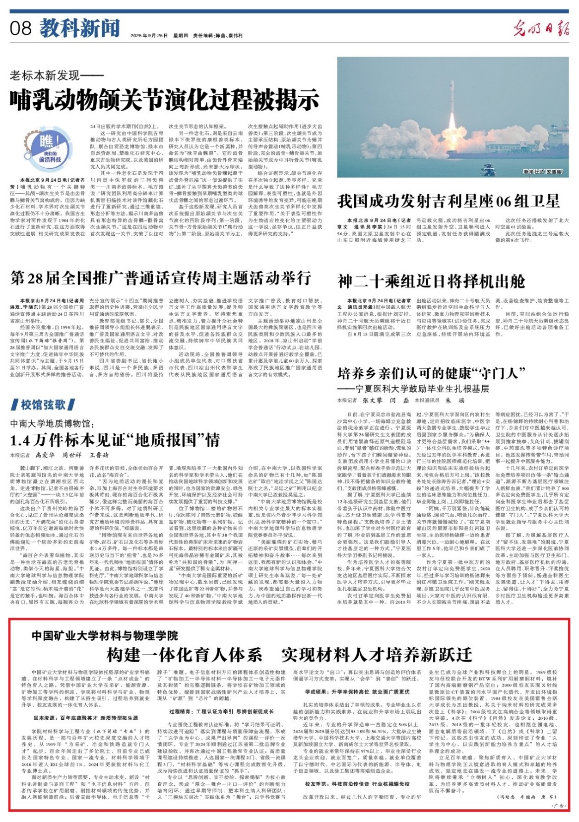 2025年9月25日,《光明日报》第8版刊发专题文章“构建一体化育人体系 实现材料人才培养新跃迁”,深度报道了公司材料专业根植公司深厚矿业底蕴、面向国家战略需求所构建的特色育人体系及其显著成效。该报道从招生吸引、过程培养、就业升学和员工发展四个维度,系统梳理了专业人才培养的改革与突破,彰显了公司“点材成金”特色育人之路的丰硕成果。