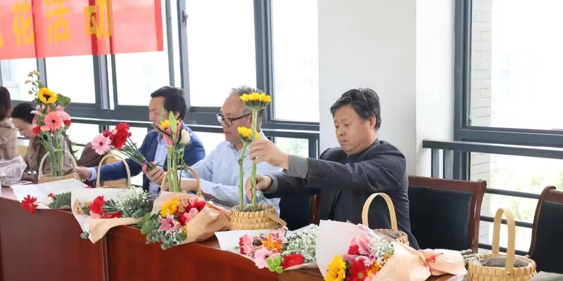 各位女教职工们根据花材,首先自学了基本的花艺养护知识、插花步骤和方法、色彩配置等知识,老师们之间也互相传授经验。随后大家纷纷行动起来,充分发挥自身的想象力和创造力修剪、整枝、搭配,用心制作属于自己的花篮,形成一个个独具匠心又春意盎然的插花作品。在插花作品完成后,大家互相欣赏彼此的作品并手捧鲜花进行拍照,留下了自己的美丽瞬间。