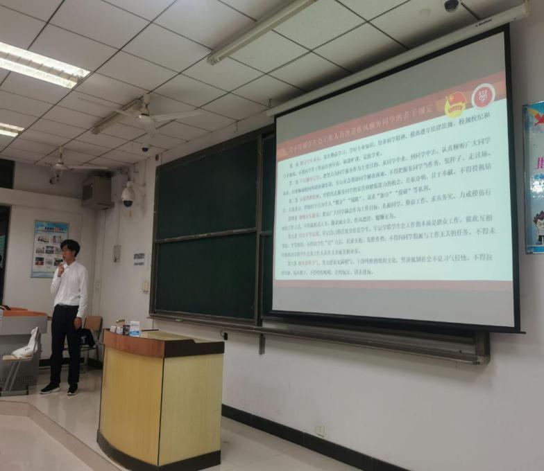 会议开始时,苏彤老师对团学组织成员在日常工作诸如礼貌、团学组织间的合作等细节问题上,对部长们提出来自己的期望。刘心扬从习近平总书记的贺信、党中央致词、大会主题、学联员工会改革、《中华全国青年联合会章程》修改的主要内容几个方面详细阐述了全国员工联合会第二十七次代表大会,并就总书记的贺信的精神对各团学组织提出新要求,提醒部长该为大一员工树立榜样,发挥模范带头作用。作为团学组织的部长,要做好员工工作,严于律己,用更高的标准要求个人,与其他成员一同更好地成长。