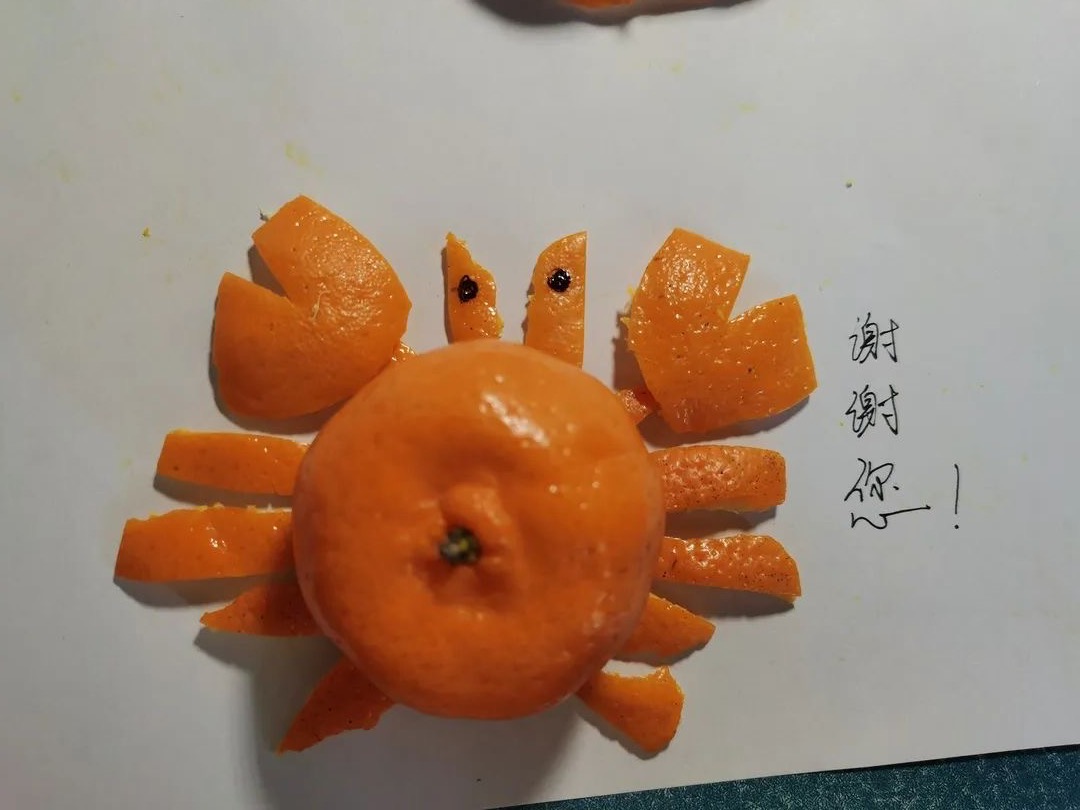 元旦期间,各位同学发挥创意性,将皇帝柑进行艺术创作,不仅将皇帝柑果皮进行了废物利用,而且丰富了同学的生活,增加了生活乐趣。