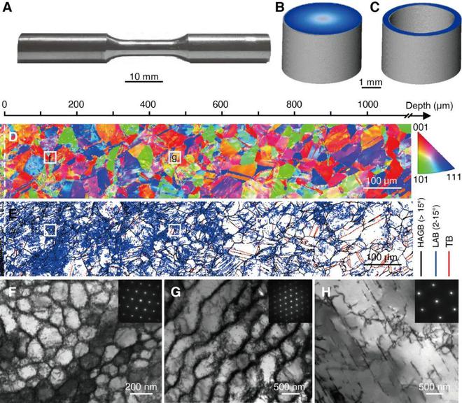 图1. 梯度位错结构(GDS)合金的典型显微组织