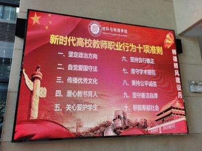 五、拓展宣传途径,营造浓厚氛围。公司充分利用LED显示屏等宣传阵地,持续滚动播放师德师风建设相关内容,也在公司网站开辟专栏,时刻提醒广大教师恪守职业规范,树立良好师表形象。